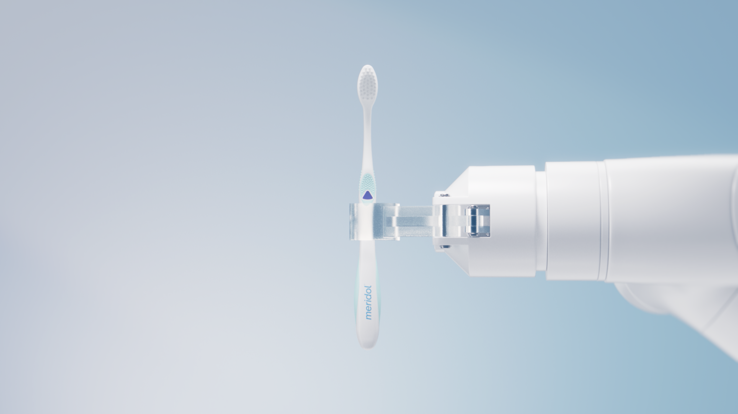 Portraying Meridol’s manual toothbrush as a high-performance oral care tool—manual in form, high-tech in action.